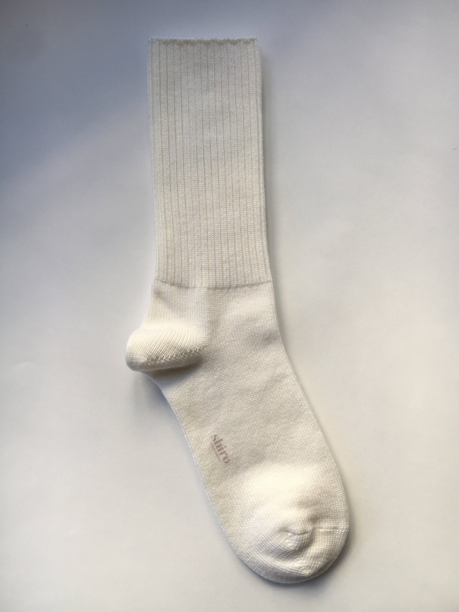 Knit in Italy from midweight soft merino, flat knit foot, hand-linked toe, and tonal logo on arch.